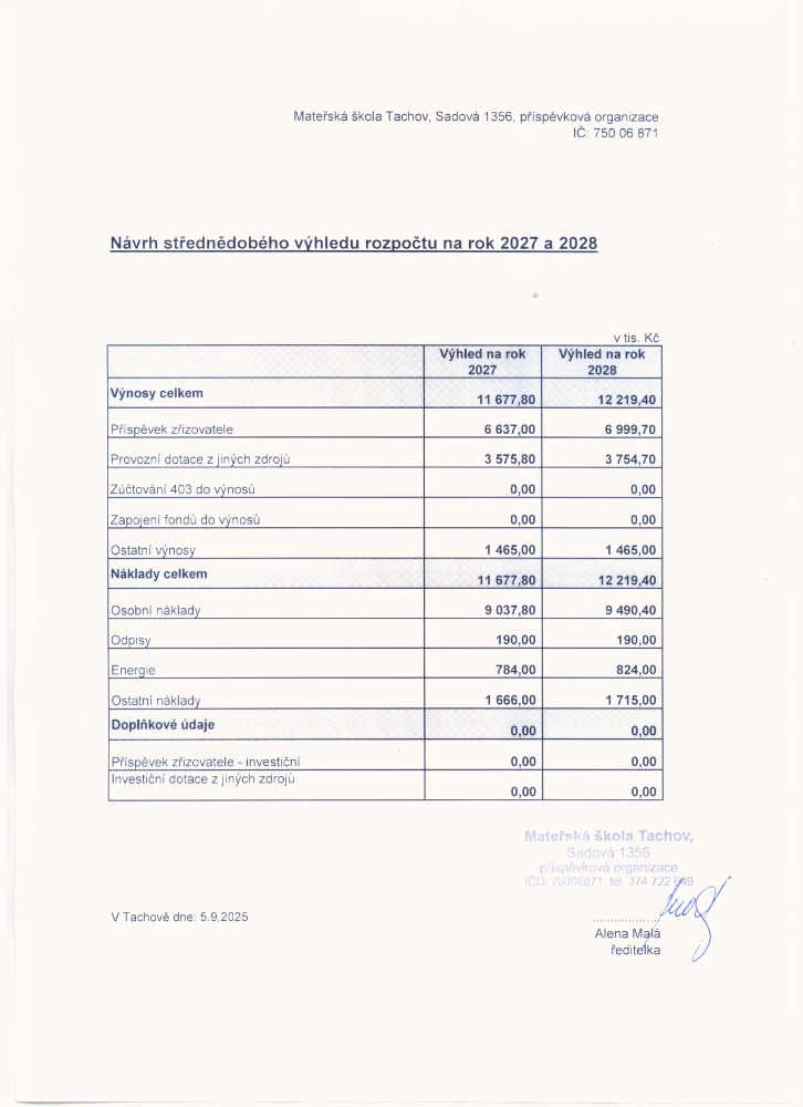 Návrh střednědobého výhledu rozpočtu na rok 2027 a 2028